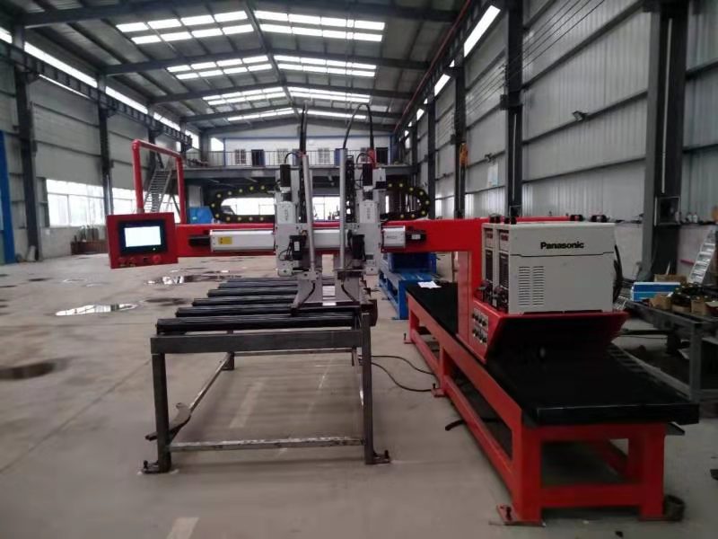 掛車生產過程中,車廂門因量大、工序復雜、焊接難度高,制約著生產產量。金瑞公司在原單槍焊接工藝基礎上,研發(fā)出雙槍自動化焊接設備。該設備立足于自動化生產線布置,從起槍、焊接、旋轉、收槍、回位,實行全自動編程控制,一臺設備相當于兩臺設備生產效率,避免了焊接生產中活件翻轉工序,勞動效率提高兩倍以上。
